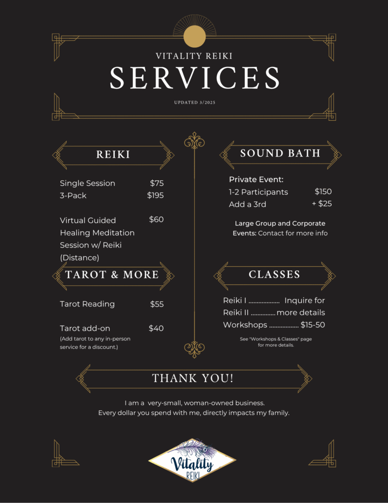 Vitality Reiki makes energy healing accessible. My deepest desire is that everyone can participate in this amazing wellness and together we can journey toward improved health and wellbeing, for self AND the collective.
